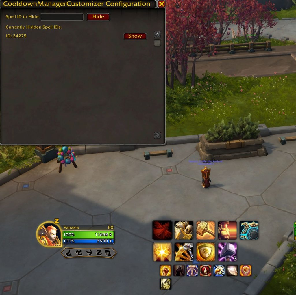 Damit öffnet ihr die Konsole. Hier könnt ihr nun die Spell-ID eingeben, die ihr nun im Tooltip (kommt durch das Addon) der Zauber sehen könnt. Klickt ihr wieder auf Show, kommt der Zauber zurück.