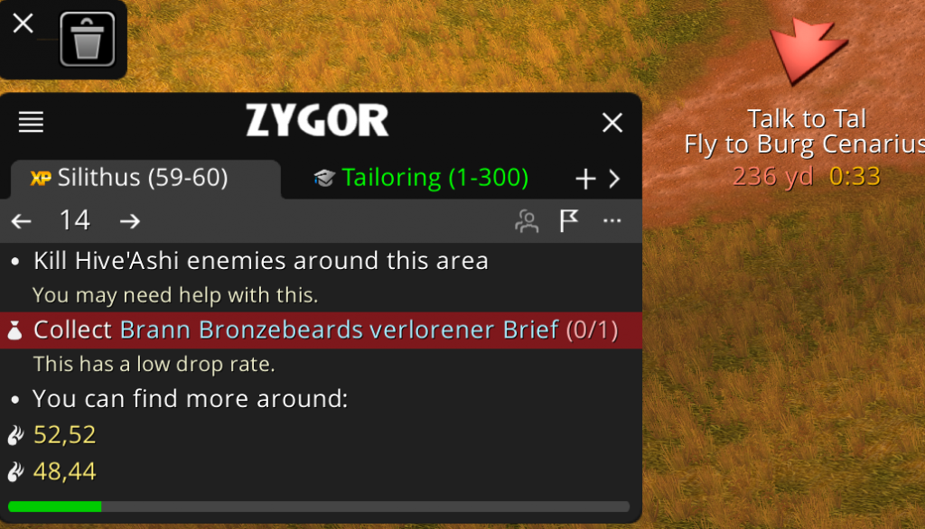 Zygor ist ein Leitfaden-System, das dich sehr stark an die Hand nimmt. Es kann deinen Fortschritt erkennen, Aufgaben für dich annehmen und abgeben und dir bei der Wahl von Aufgabenbelohnungen helfen. Ziel ist, dass du weniger suchen und planen musst, weil dir eine sinnvolle Reihenfolge und klare nächste Schritte vorgegeben werden.
