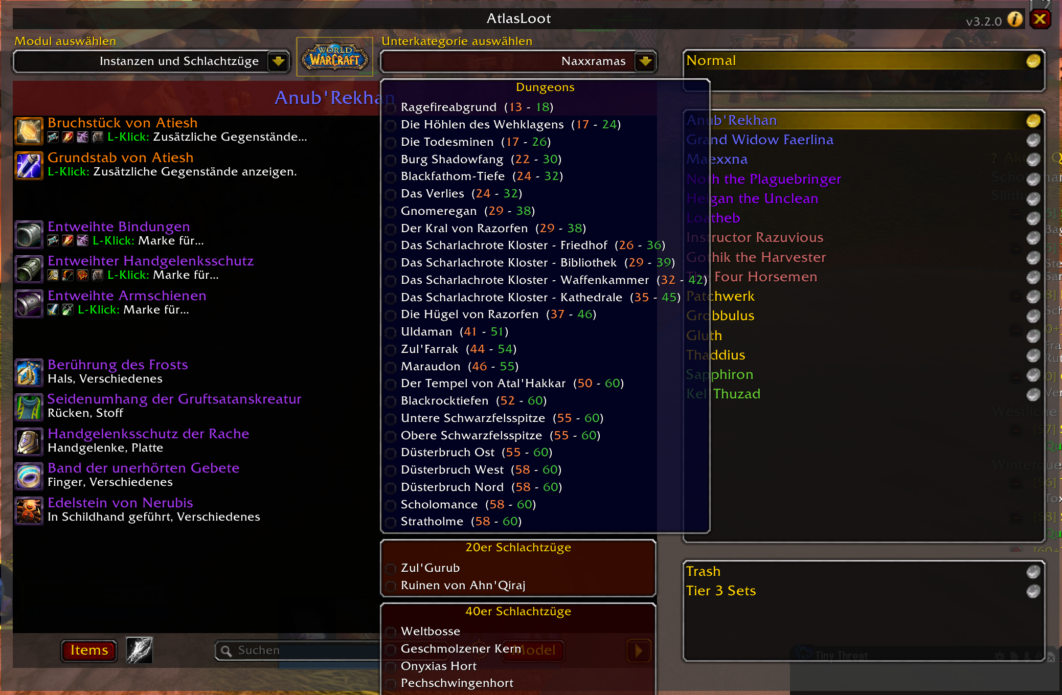 AtlasLootClassic ist im Kern ein Nachschlagewerk im Spiel, mit dem du Beute-Listen von Endgegnern durchsuchen kannst, wann immer du willst. Es zeigt dir übersichtlich, welche Gegenstände aus Verliesen und Schlachtzügen kommen, ohne dass du dafür außerhalb des Spiels suchen musst.