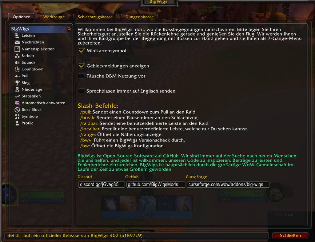 Wichtig: BigWigs_Classic ist kein allein stehendes Werkzeug, sondern ein Erweiterungspaket für BigWigs und braucht BigWigs zwingend, um zu funktionieren.