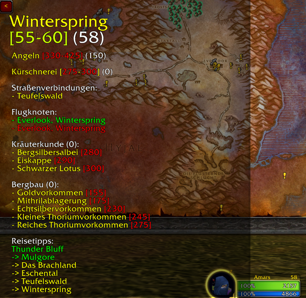 Richtig praktisch sind die vielen kleinen Infos: Es kann den benötigten Angel-Fertigkeitswert anzeigen und liefert Hinweise zu Kräutern und Erzvorkommen im Gebiet. Außerdem markiert es Eingänge von Verliesen und Schlachtzügen als Symbole auf der Karte, damit man nicht ewig nach dem Portal sucht. Unterm Strich ist ZoneDetails weniger eine Aufgabenhilfe, sondern eher eine Orientierungshilfe, damit du schneller weißt, was ein Gebiet bietet und welche Inhalte dort sinnvoll sind.