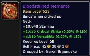 Mit dem letzten Patch für die Testrealms von Patch 11.2 von The War Within gibt es eine kleine Änderung. Spieler, die sich in den Dungeon „Priorat der Heiligen Flamme“ wagen, können jetzt den bisher nicht verfügbaren Gegenstand Bloodstained Memento ergattern, eine Halskette.