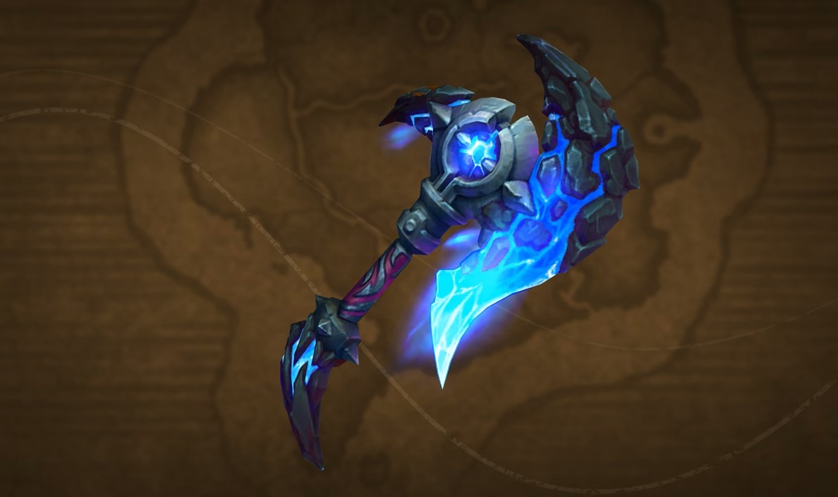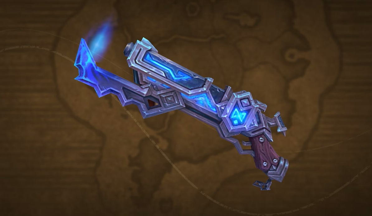 „Die kalten Flammen der Magie knistern in dieser arkanen Schlachtausrüstung.“