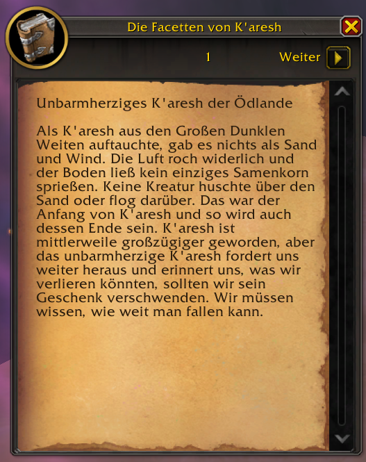 Mit Patch 11.2 kommt eine neue Zone ins Spiel, Karesh. Auf dieser finden wir wirklich spannende Bücher zur Lore des zerstörten Planeten und der Entstehung der Astralen. Mit diesen Büchern kommt auch ein Erfolg: Geheimnisse der Kareshi