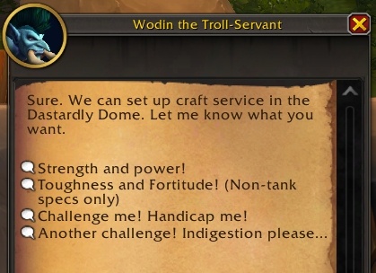 Weitere Speisen können bei Wodin, dem Trolldiener, bestellt werden. Dort können die Spieler auswählen, welche Speisen sie in ihrer nächsten Instanz von „Durchtriebene Duos“ erhalten möchten. Es gibt eine Vielzahl von Optionen zur Auswahl, also lasst eurer Kreativität freien Lauf und fordert euch vielleicht sogar ein wenig heraus!