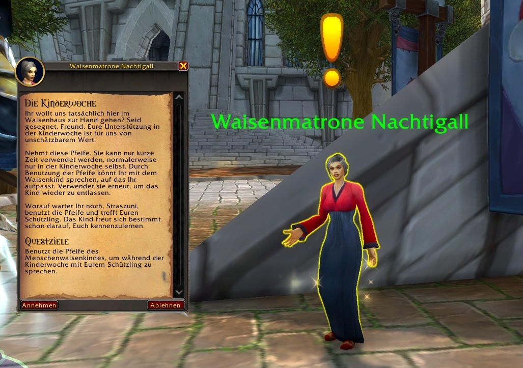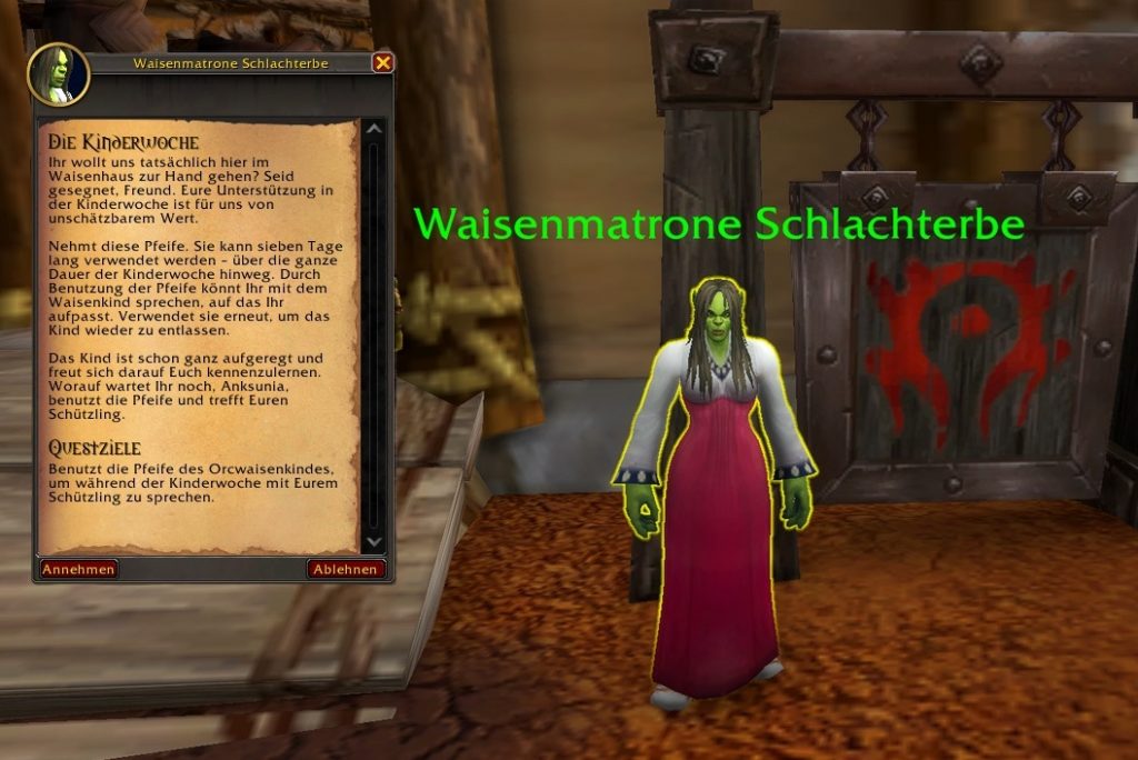 Die Kinderwoche findet immer rund um die erste Maiwoche statt, in diesem Jahr beginnt sie am 28.04. gegen 10 Uhr und endet am 05.05. um 10 Uhr. Vergesst all die Bösewichte und Endbosse, denen ihr je begegnet seid. Wir müssen nun Eltern spielen für alle Waisenkinder in Azeroth und sicher stellen, dass sie glücklich sind.