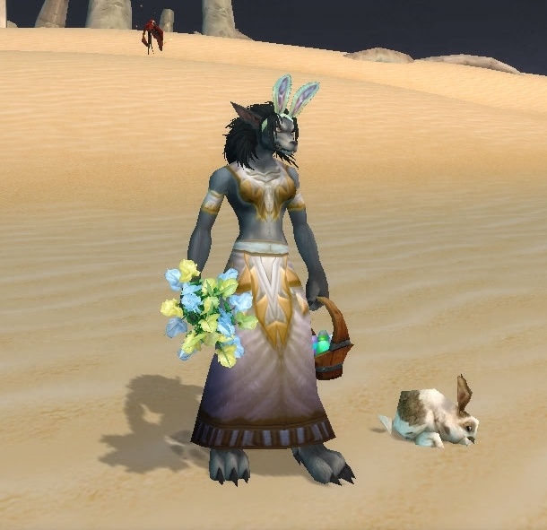 • Dafür müsst ihr die Frühlingsblumen Frühlingsblumen benutzen, um einem Spieler Hasenohren aufzusetzen. Das müsst ihr bei Spielcharakteren sämtlicher Völker, die über Stufe 18 sind, machen.