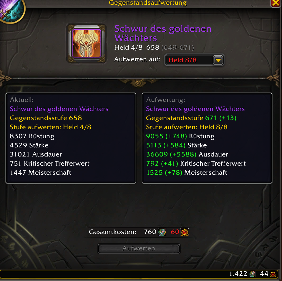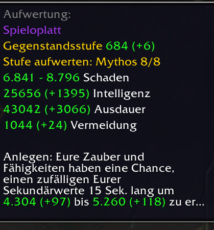 Als Teil des Turbo-Boost-Events werden die Aufwertungstracks für Ausrüstung der heroisch und mythisch um 2 Aufwertungen erhöht (von 6 auf 8). Diese Ausrüstung kriegst du via M+ nur über die Kammer, wenn du mindestens eine Stufe 10er Dungeon abgeschlossen hast. Die Maximalgegenstandstufe sollte dann 684 betragen.