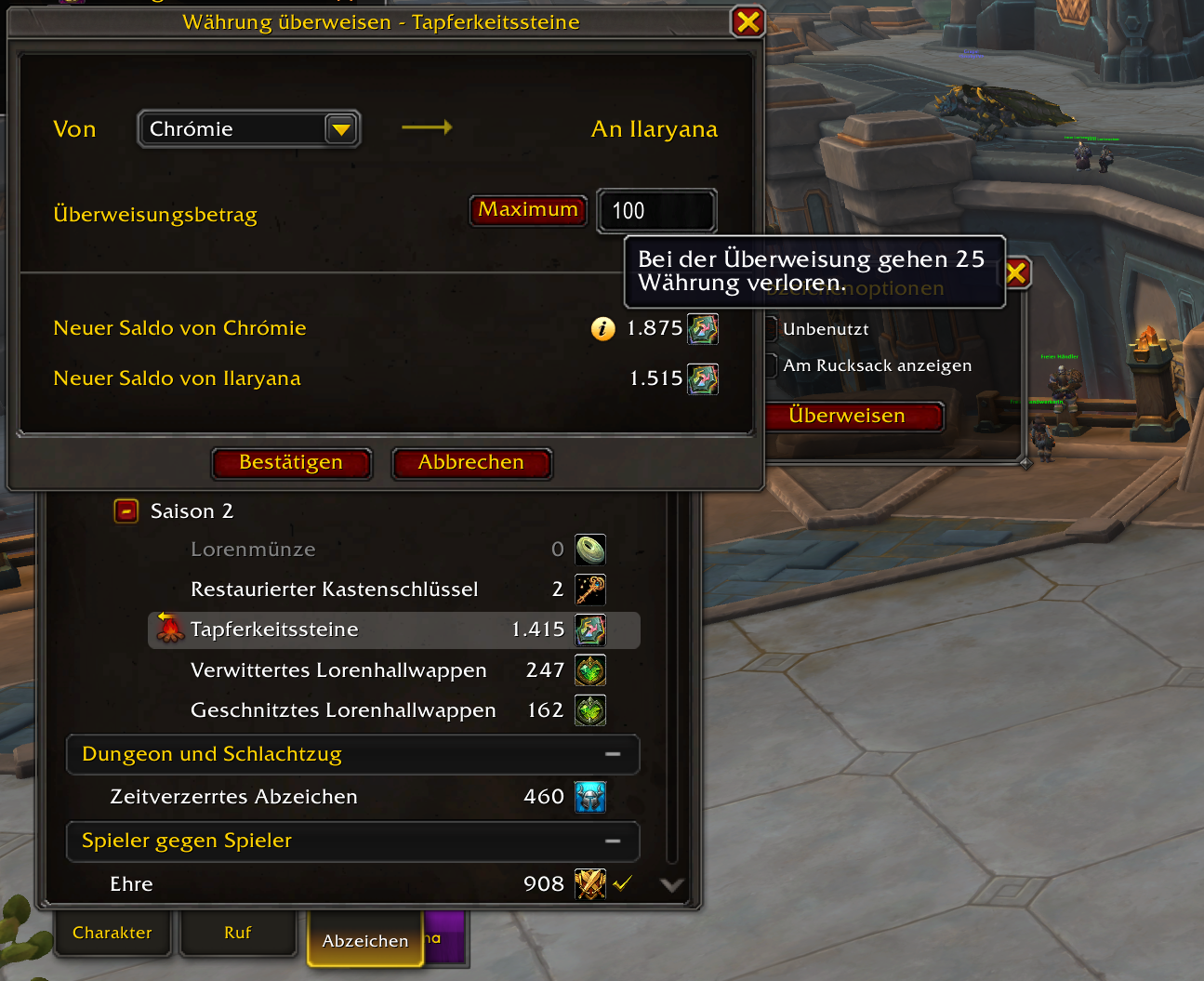In „The War Within Saison 2“ gibt es zwei Hauptwährungen, mit denen du deine Rüstungen und Waffen aufwerten kannst: Lorenhall-Wappen und Tapferkeitssteine. Ab dem 14. Mai wird die Obergrenze für Lorenhall-Wappen aufgehoben und Tapferkeitssteine werden kriegsmeutengebunden, aber Achtung! Ihr habt eine Verlustrate von 25%.