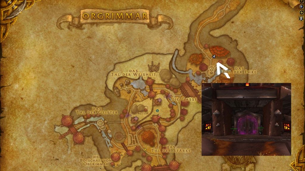 - Ort Horde: Shlae’gararena im Tal der Ehre in Orgrimmar (Portal im Tal der Ehre).