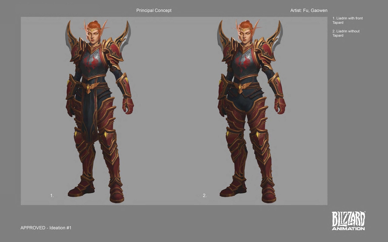 Hier könnt ihr einen Blick auf das Liadrin-Konzept für WoW’s Midnight-Cinematic “Fürbitte” sowie auf Gaowen Fu’s Version des Paladin-Konzepts werfen. Das endgültige Paladin-Konzept stammt von Adam Baines.