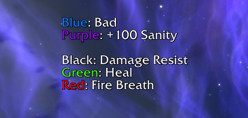 Danach erscheint ein Feld mit allen wichtigen Infos, die du brauchst, um zu wissen, welche Tränke du trinken musst, um wieder klar zu denken oder einen bestimmten Effekt zu erzielen. Denk dran, dass es Tränke gibt, die deiner geistigen Gesundheit Schaden zufügen können.