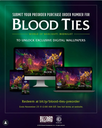 Blizzard hat heute eine neue Promotion für den nächsten Roman bekanntgegeben, zum Buch “Blood Ties” von Christie Golden. Dies ist der Roman zur neuen Erweiterung Midnight und das erste Mal das Blizzard solch eine Promotion für einen Roman macht.