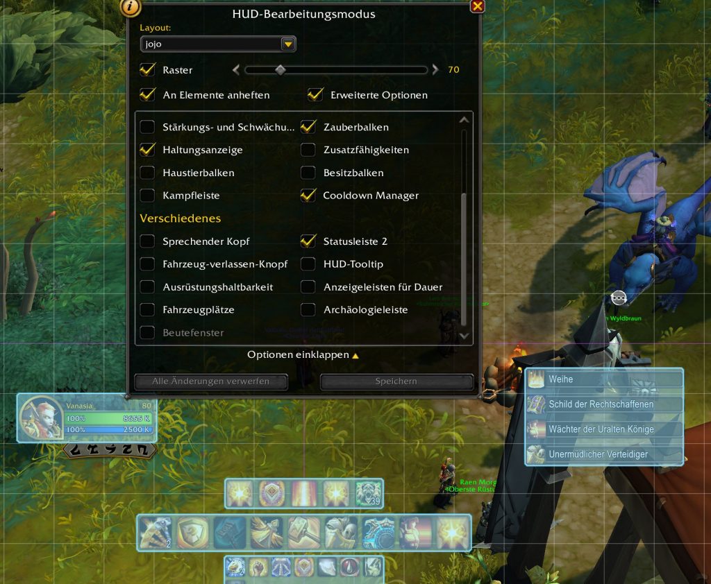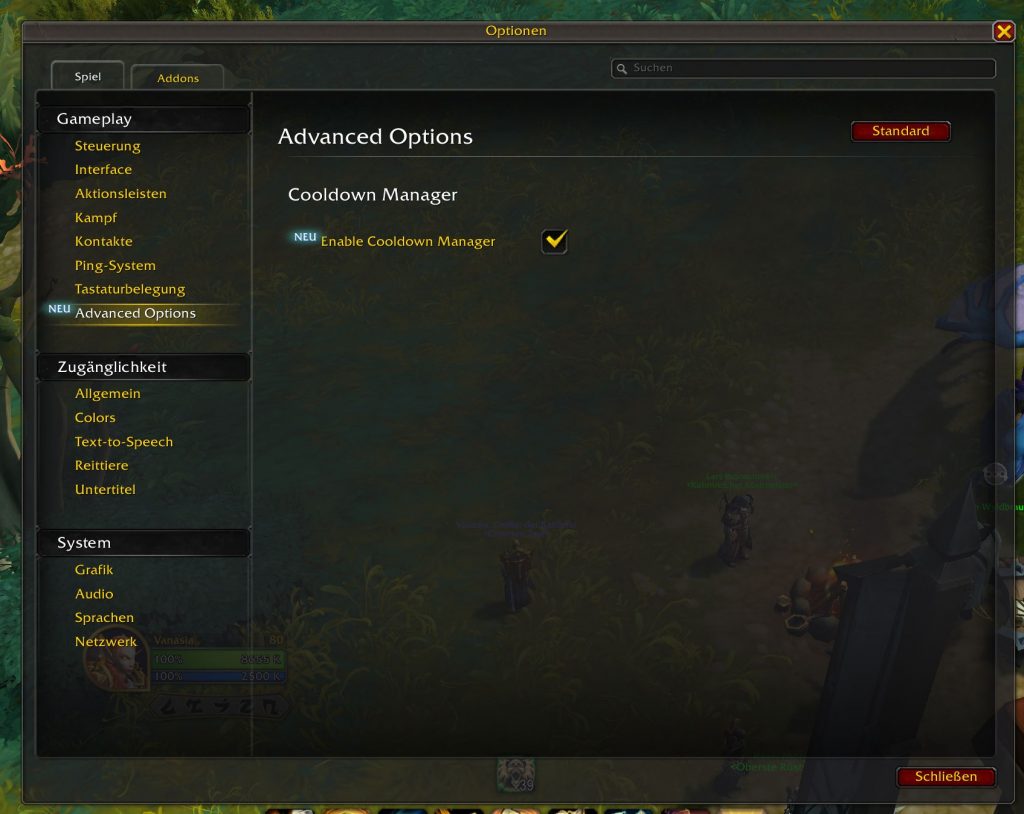 Nun kommt er, der Abklingzeiten Manager, eine Art WeakAura von Blizzard selbst. Einfach zu handhaben und Übersichtlich. In den Optionen könnt ihr diesen Manager einschalten und einstellen könnt ihr ihn über das Bearbeitungs-Tool.