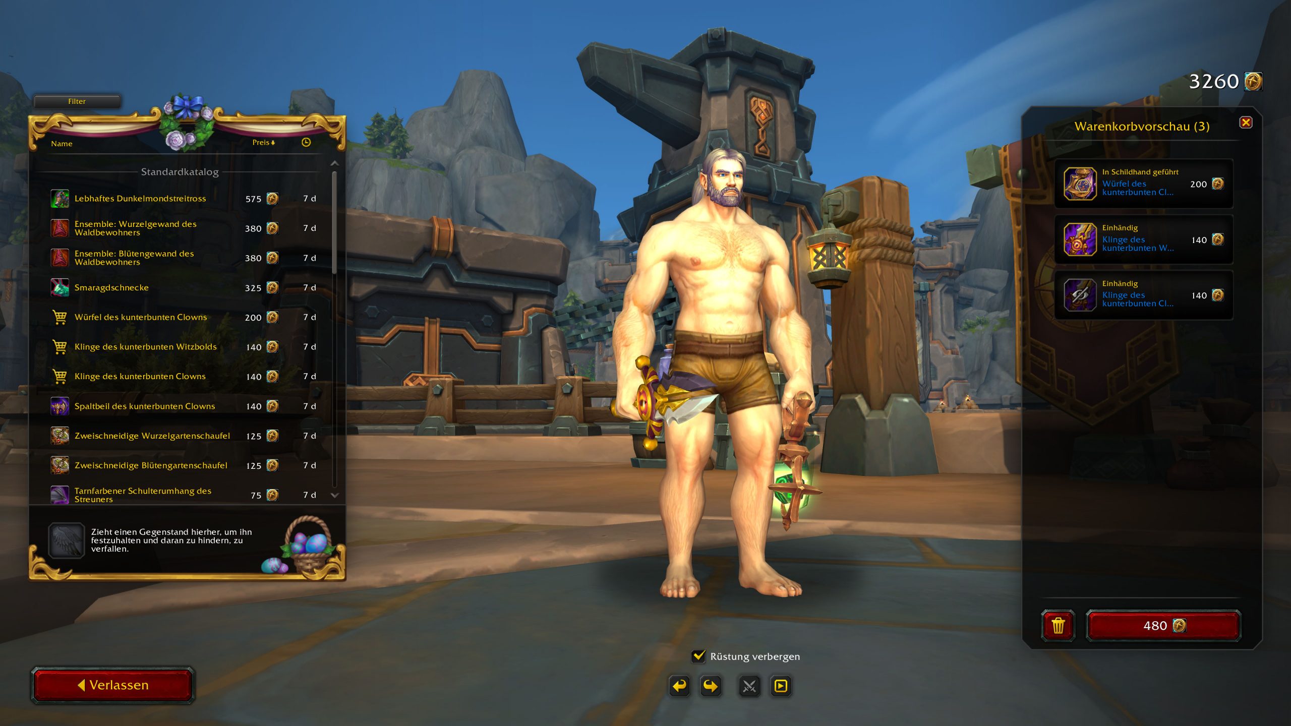 Für die Allianz findet man ein Schwert, einen Dolch und eine Sekundärwaffe sowie einen Schild mit dem Emblem der Allianz, alle in Holzoptik. Für die Horde finden wir die gleichen Gegenstände, die als Äxte gestaltet sind und die Farben der Horde tragen. Mehr dazu im Beitrag:
