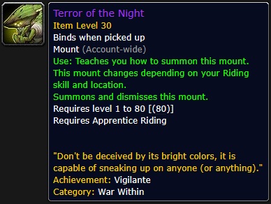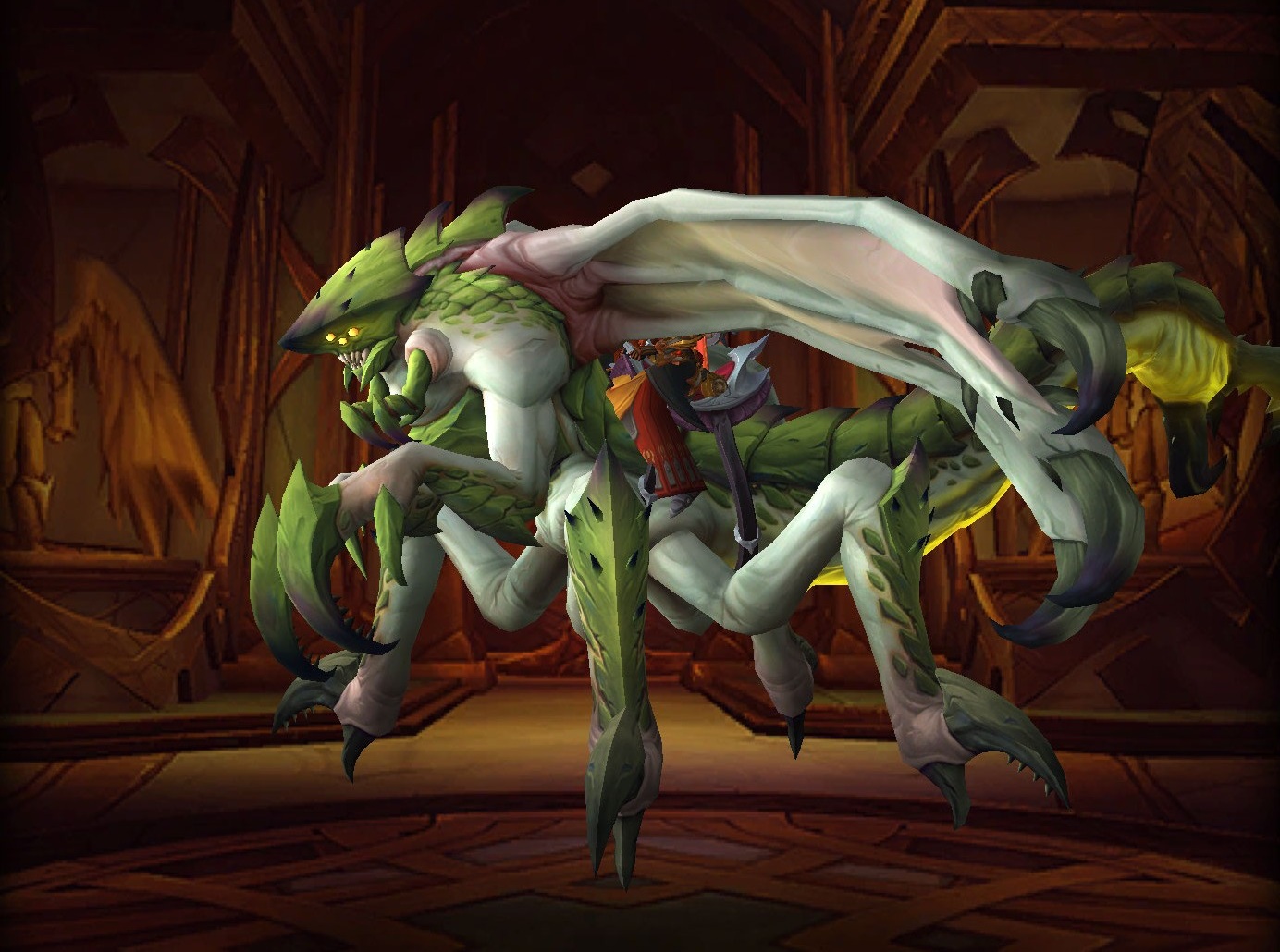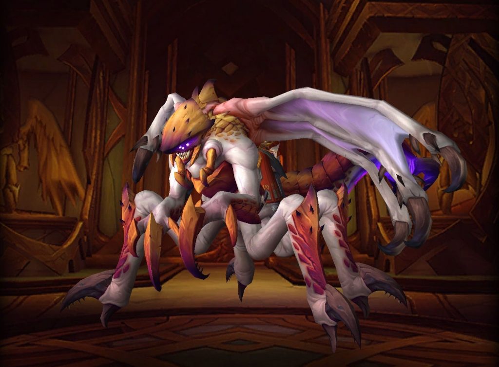 Auf dem PTR finden sich 2 neue Reittiere, die dem Boss Rasha’nan aus dem Palast der Nerub’ar sehr ähneln. Lediglich der Kopf ist anders und die Farbe.