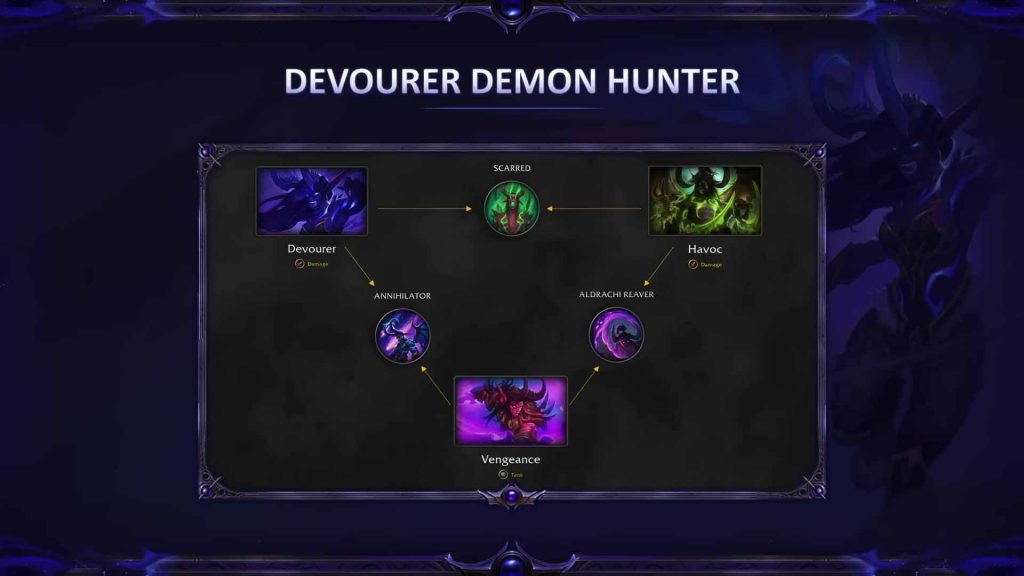 Da der Dämonenjäger eine weitere Spezialisierung erhält, bekommt er auch eine Aktualisierung im Heldenbaum – Annihilator. Im Bild könnt ihr sehen, wie die neue Anordnung beim Dämonenjäger aussehen wird: