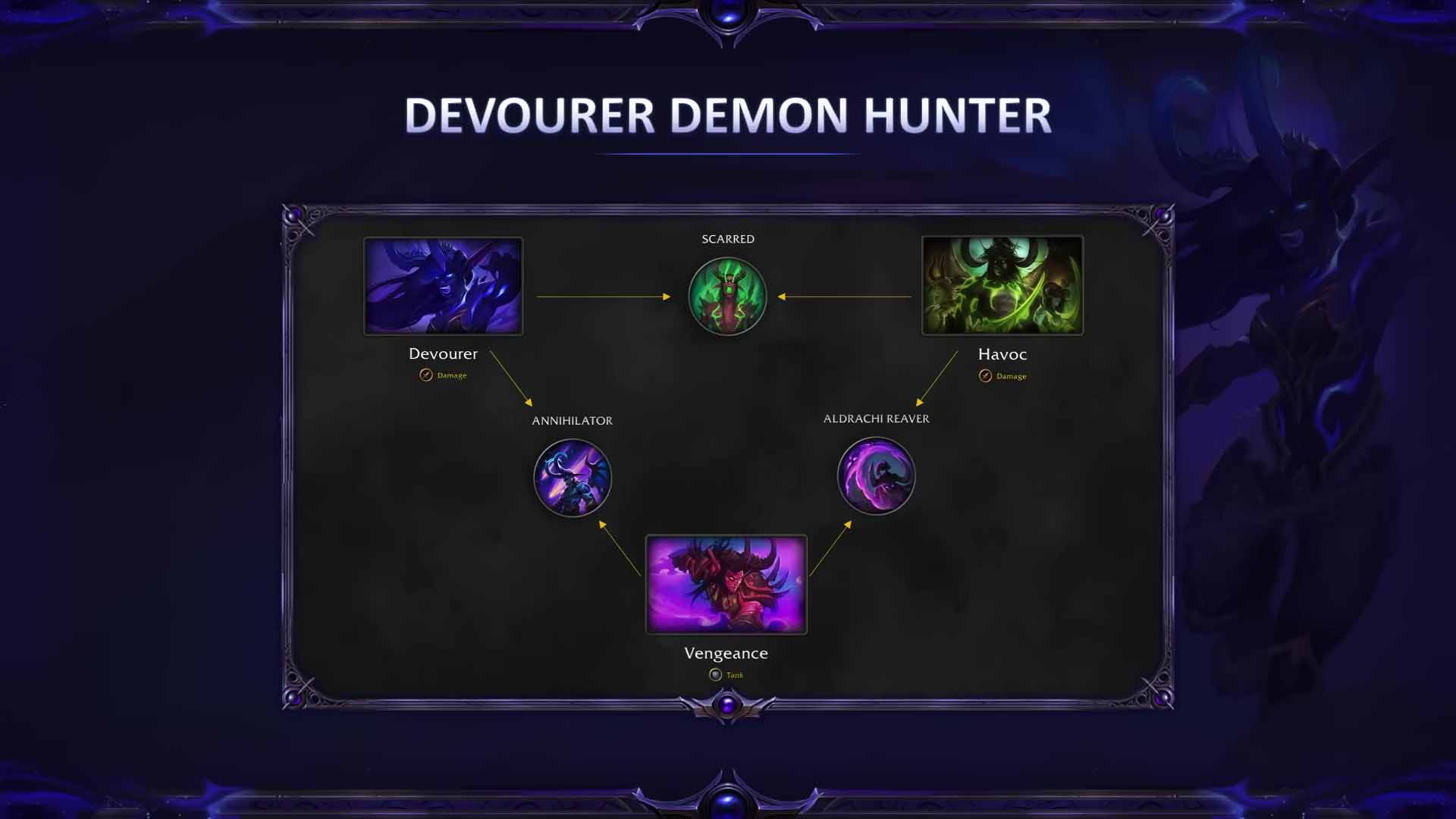 Da der Dämonenjäger eine weitere Spezialisierung erhält, bekommt er auch eine Aktualisierung im Heldenbaum – Annihilator. Im Bild könnt ihr sehen, wie die neue Anordnung beim Dämonenjäger aussehen wird: