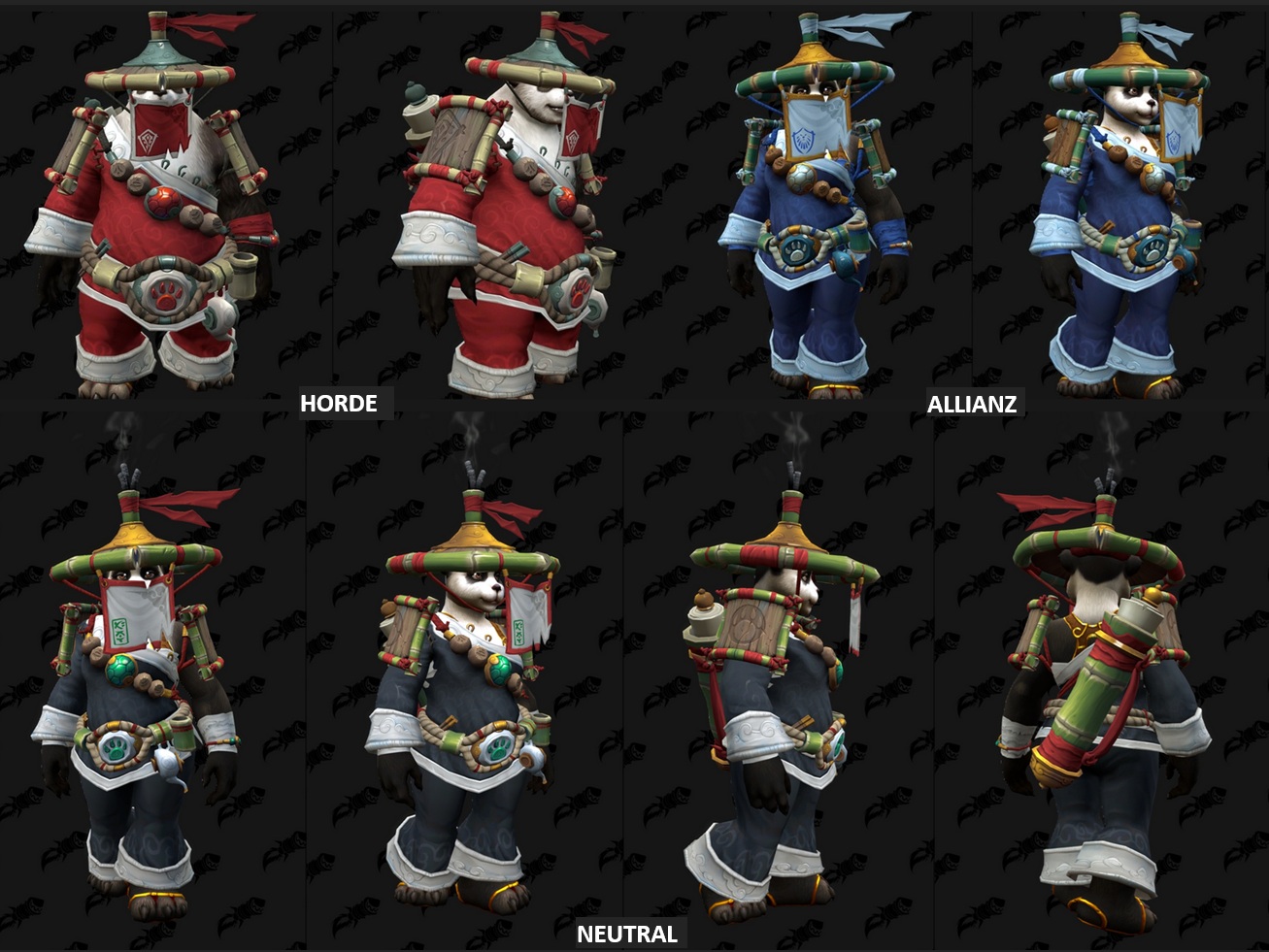 Die Traditionsrüstung der Pandaren kommt vorraussichtlich mit Patch 11.2.7 ins Spiel. Sie besteht aus drei Varianten, die auf ihrer Fraktion basieren: eine im Stil der Allianz (Tushui), eine der Horde (Huojin) und eine neutrale, die sich an der “Wandernden Insel” orientiert.