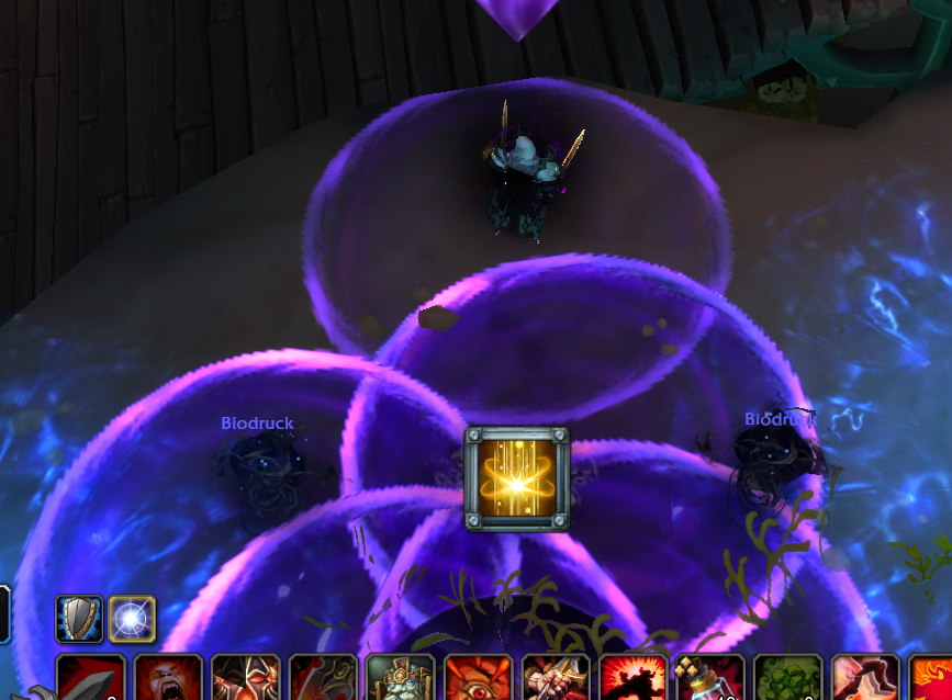 Berührt ihr diese Fläche, oder den Kreis selber, bekommt ihr einen Debuff und hinterlasst für einige Sekunden Leeren Geschoss Einschlagsflächen unter euch, welchen ihr ausweichen müsst.