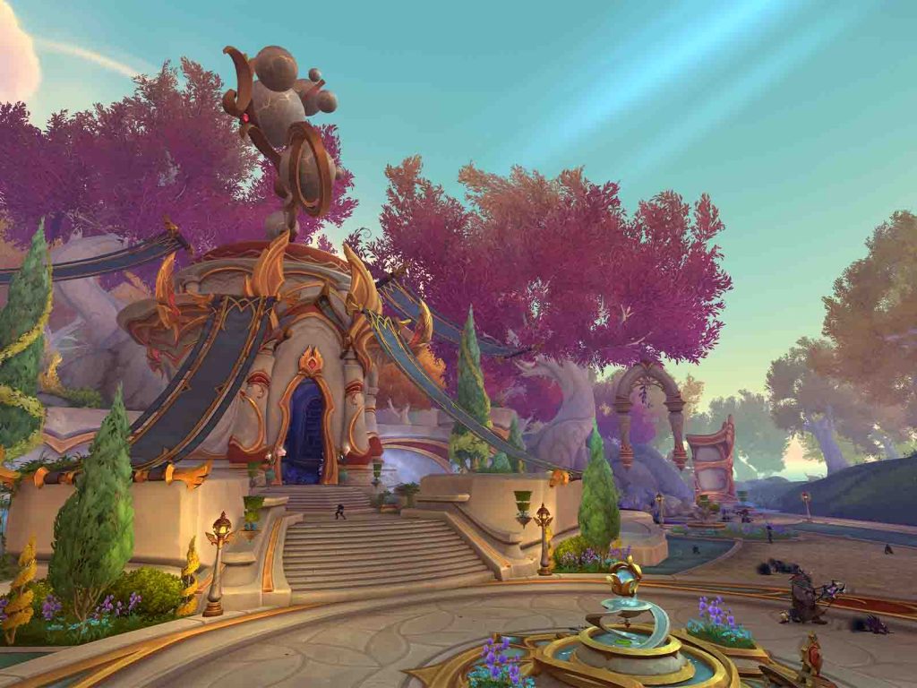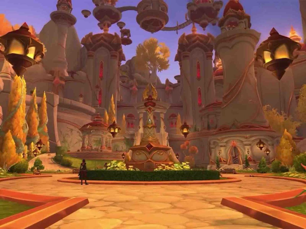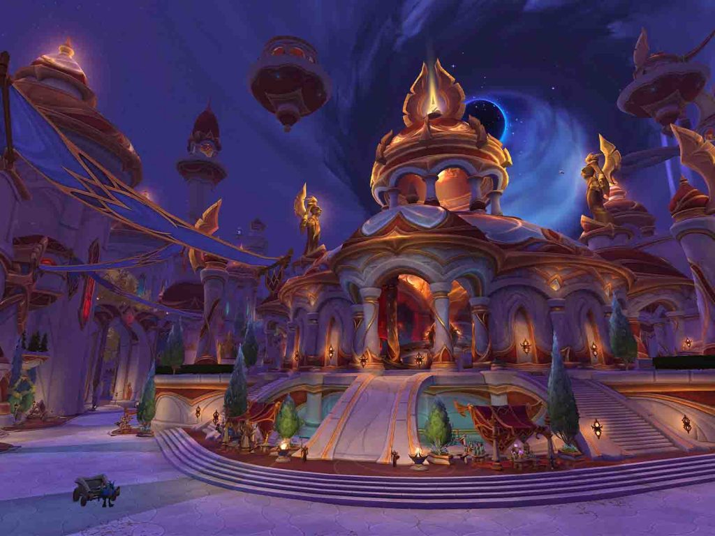 Silbermond ist Symbol des Überlebenswillens der Blutelfen – prachtvoll, aber historisch gezeichnet. Der Wiederaufbau betont Opulenz und Widerstandsfähigkeit zugleich: marmorne Hallen, wiedereröffnete Promenaden, neue Magistrats‑Flügel.