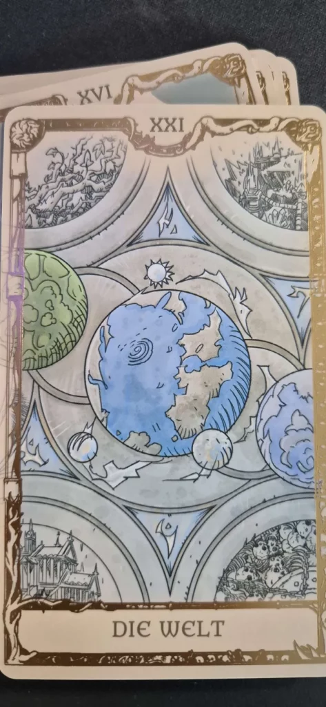 Für den Preis von 18,99 € hätte ich nie erwartet, dass die Karten eine solche Wertigkeit vermitteln. Sie wirken wie ein echtes Sammlerstück und sind definitiv mehr als nur ein funktionales Tarotset. Zudem wird das Set durch ein umfangreiches und gut durchdachtes Erklärbuch ergänzt. Es bietet viele Hintergrundinformationen und ist in der deutschen Übersetzung fehlerfrei, was in der Vergangenheit bei Panini und ähnlichen Veröffentlichungen nicht immer der Fall war. Das ist für mich als Fan und die Wertschätzung für die Originalität des Spiels von großer Bedeutung.