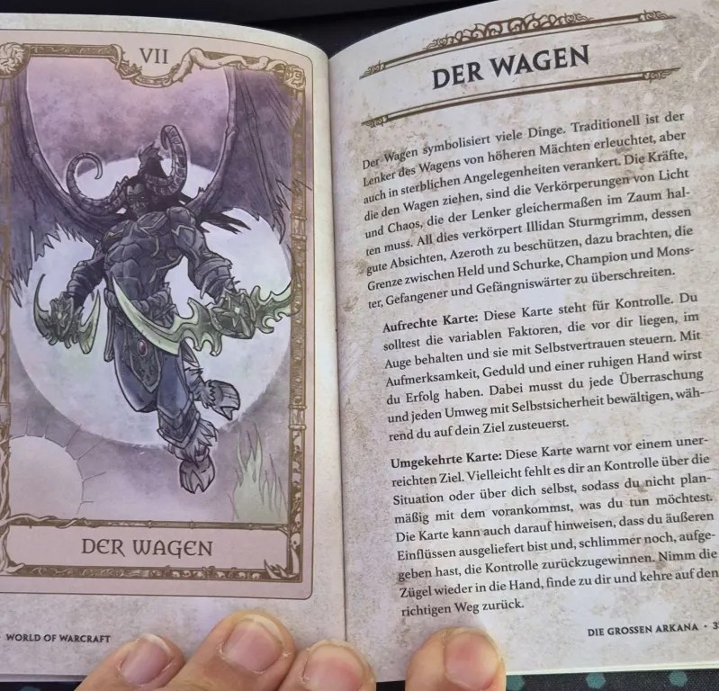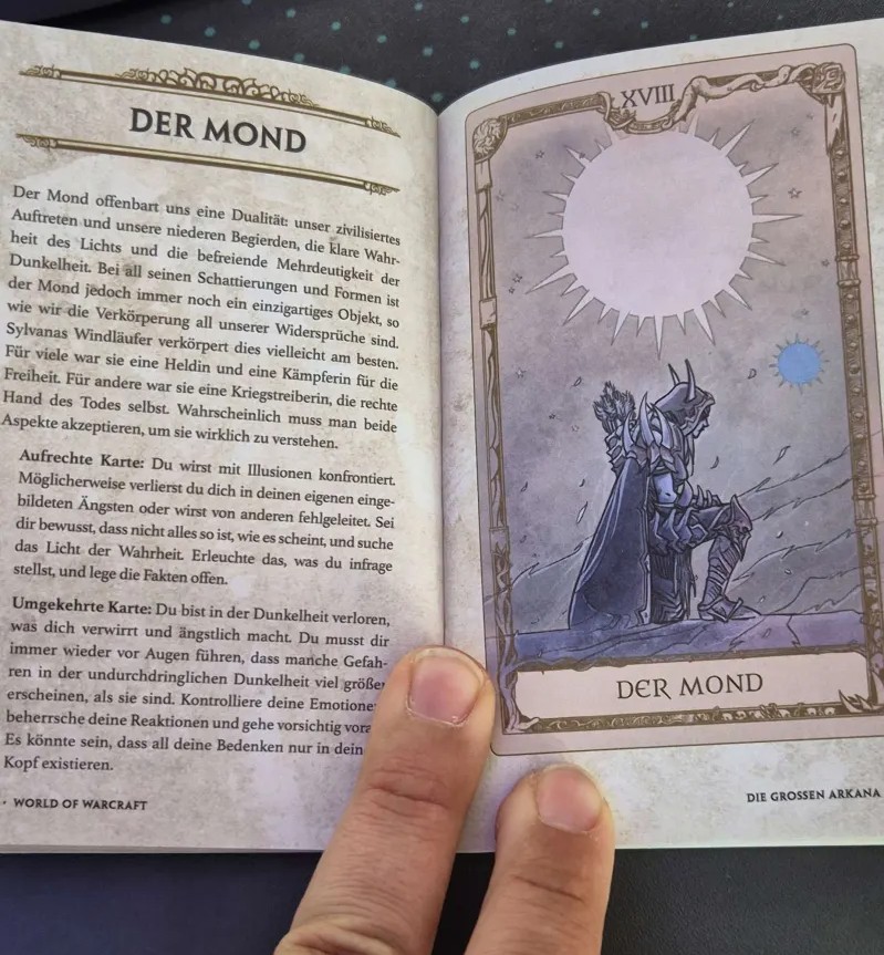 Die wahre Stärke dieses Tarotsets liegt jedoch in den Illustrationen. Jede Karte ist ein kleines Kunstwerk, das die einzigartige Welt von Azeroth lebendig werden lässt. Für jemanden wie mich, der die Lore von World of Warcraft bis ins kleinste Detail verfolgt, sind die Illustrationen eine wahre Freude. Die Karten bieten nicht nur visuelle Schönheit, sondern auch eine tiefere Bedeutung, die den Charakteren und den Geschichten aus WoW gerecht wird.